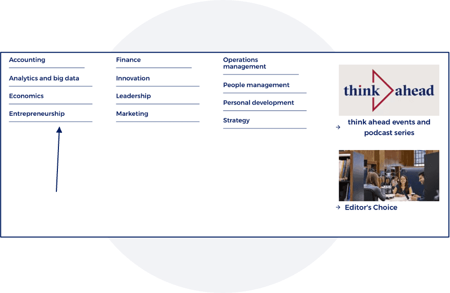 The mega navigation design creates confusion, as users struggle to differentiate between Think topics and academic programs, sometimes perceiving them as areas of study.