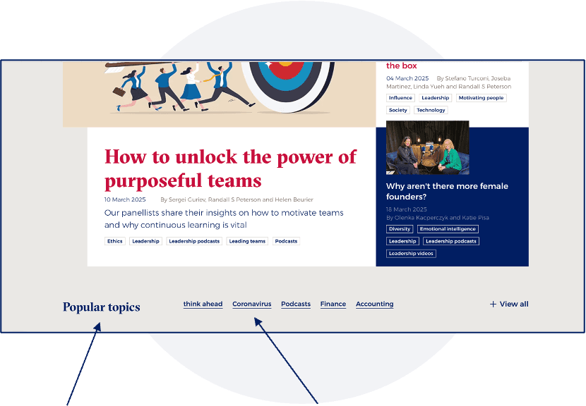 The topics section is sometimes overlooked by users, and certain areas, such as coronavirus or accounting, may not be of high interest.