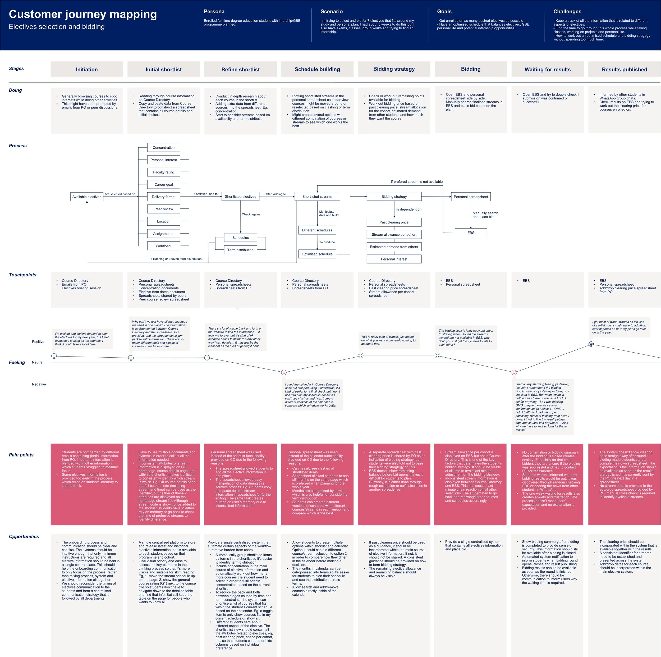 Discover studentsβ needs, motivations, behaviour, journeys, feelings, opinions and desire in order to create a heuristic view of the whole bidding process.