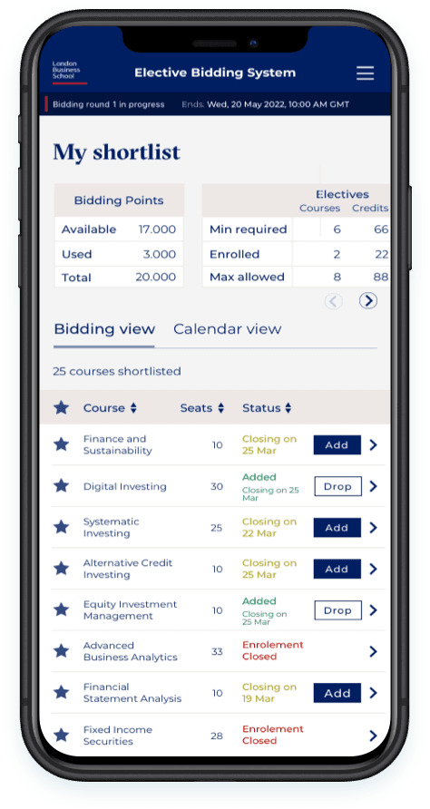 The existing elective bidding system at London Business School was fragmented, outdated, and no longer supported.